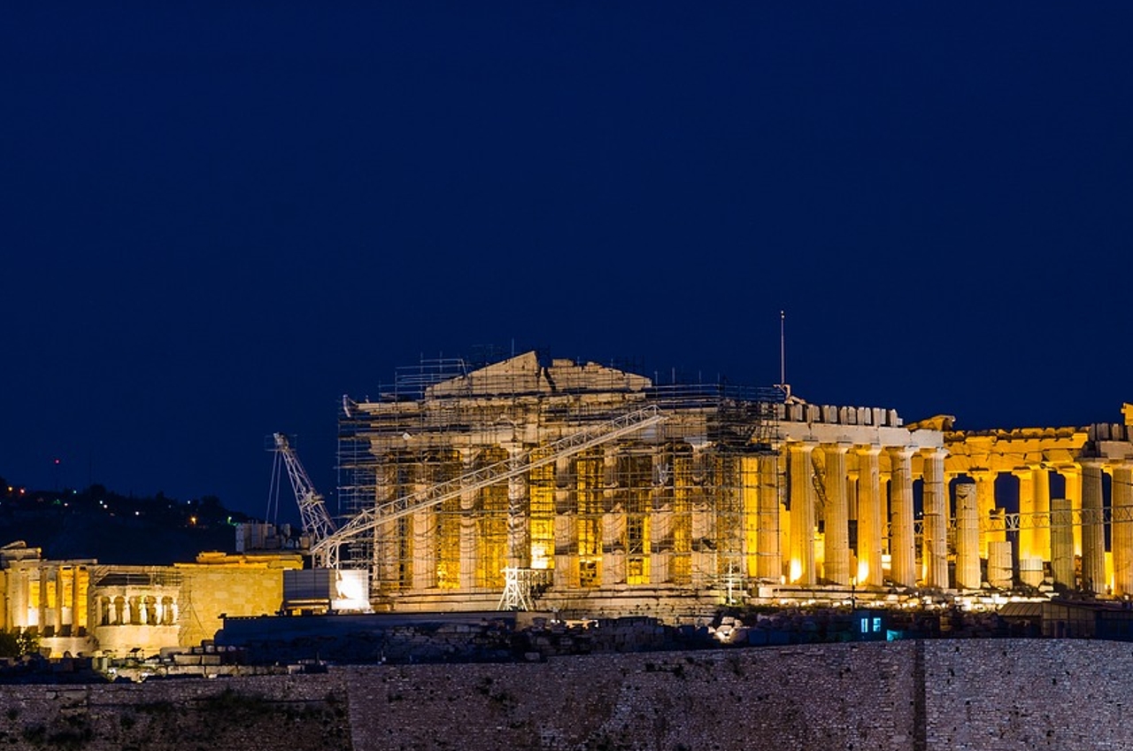 Acropolis Hill (Propylaea, the Temple of the wingless Nike, the Erectheion with the imperious maidens Caryatids, Parthenon),